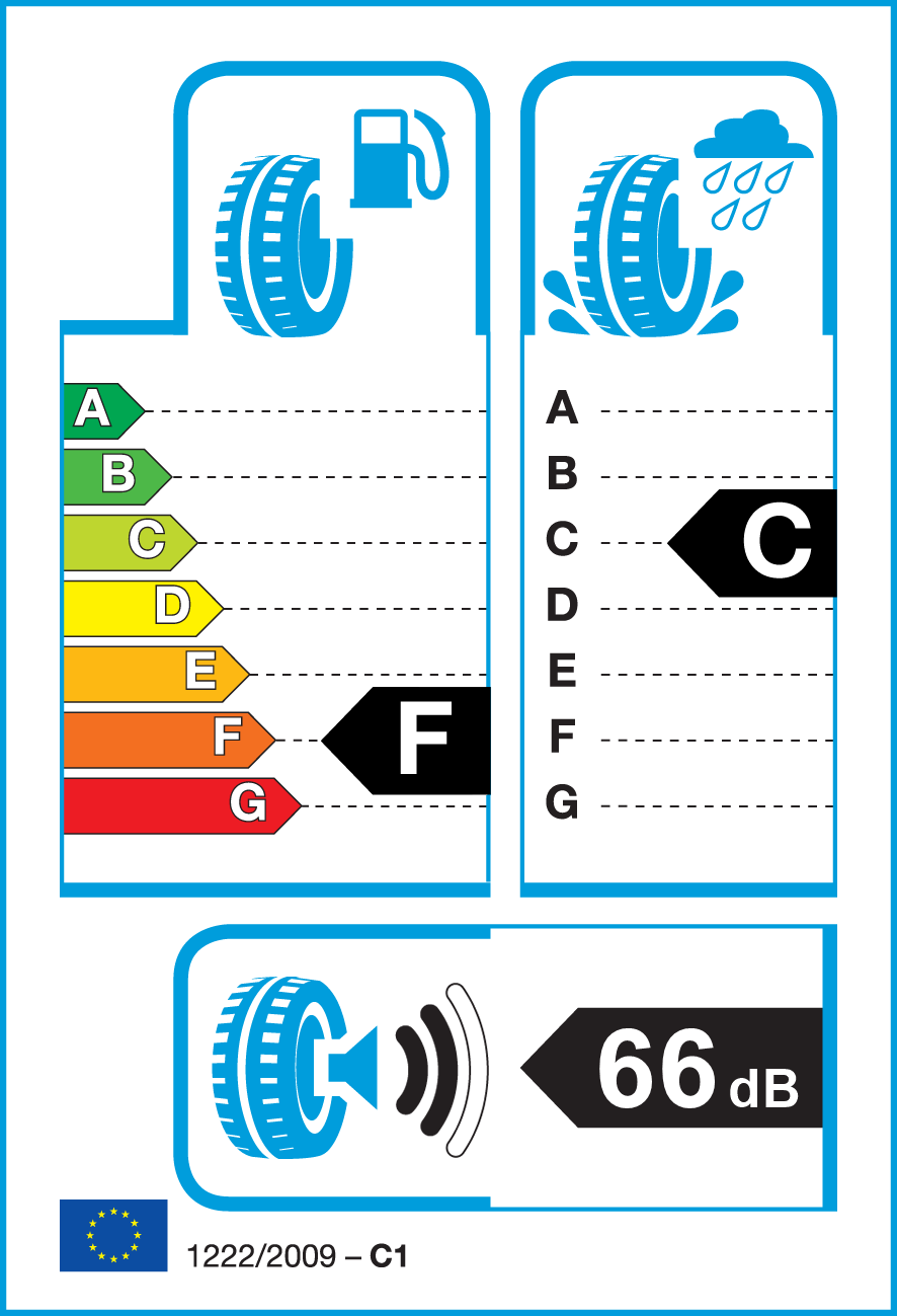 Spazio di frenata minore su fondo bagnato di 12 metri ad 80 Km/h confrontato con un pneumatico di classe F.