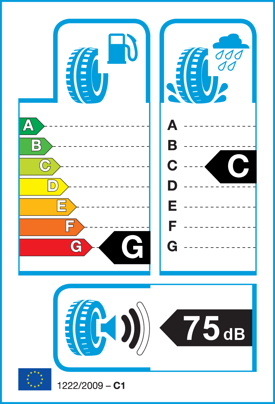 Spazio di frenata minore su fondo bagnato di 12 metri ad 80 Km/h confrontato con un pneumatico di classe F.